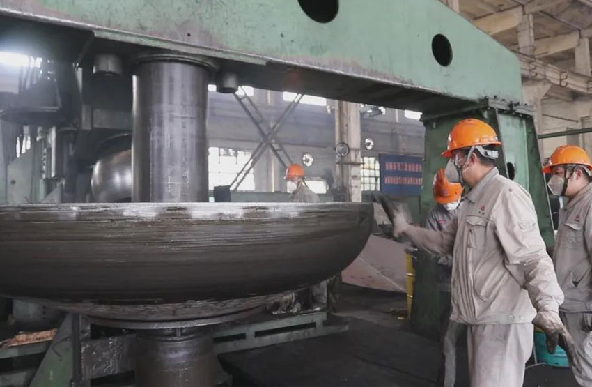 近日,山東齊魯石化機械制造有限公司旋壓車間旋壓制作出直徑2500毫米、壁厚15毫米的鈦304復(fù)合板(12+3)的封頭。山東齊魯石化機械制造有限公司旋壓車間成立攻關(guān)小組,對此特殊材料復(fù)合板材封頭專門立項研究,制定詳細(xì)周密的施工方案,在車間相關(guān)人員的共同努力下,最終一次旋制成功。